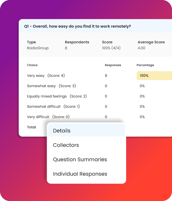 Survey software allows your business to better understand its core asset: its workforce. Collecting feedback to understand employee sentiment and realign processes can reduce employee turnover and absenteeism, and advance customer-employee relations.