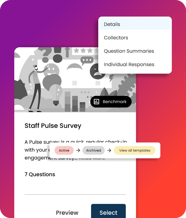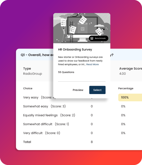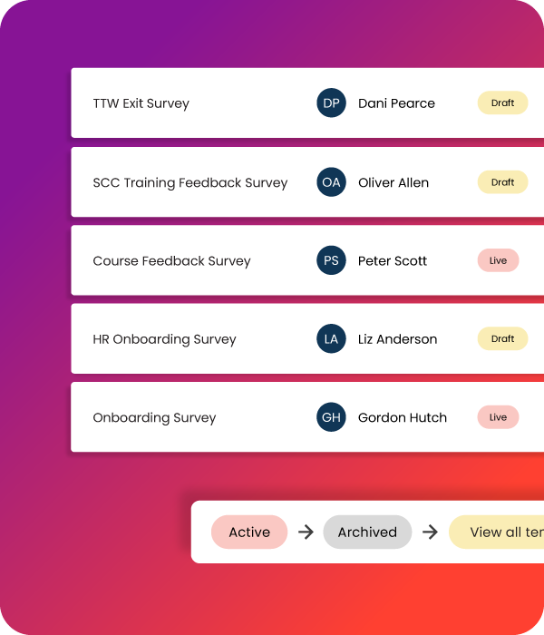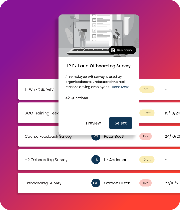 Take off quickly. Deploy proven surveys across engagement, onboarding, exit and pulse. Customise your own approach with ease.