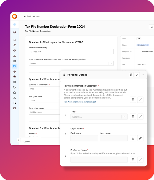 Eliminate manual data entry. Capture employee details once with digital forms that feed straight into your HR and payroll systems. No more double-handling, just accurate records from day one.