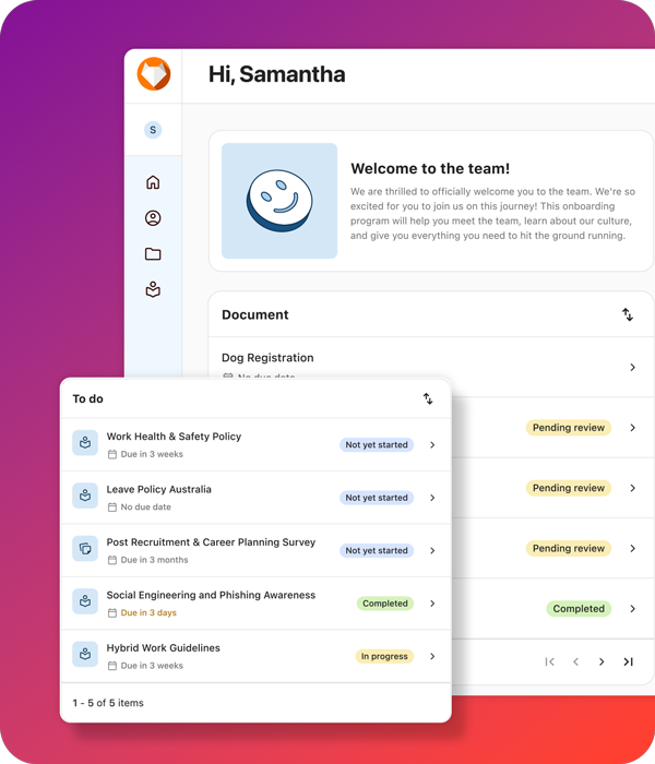 Give every new hire a personalised welcome. Showcase your culture with branded portals, welcome messages, videos and team introductions.