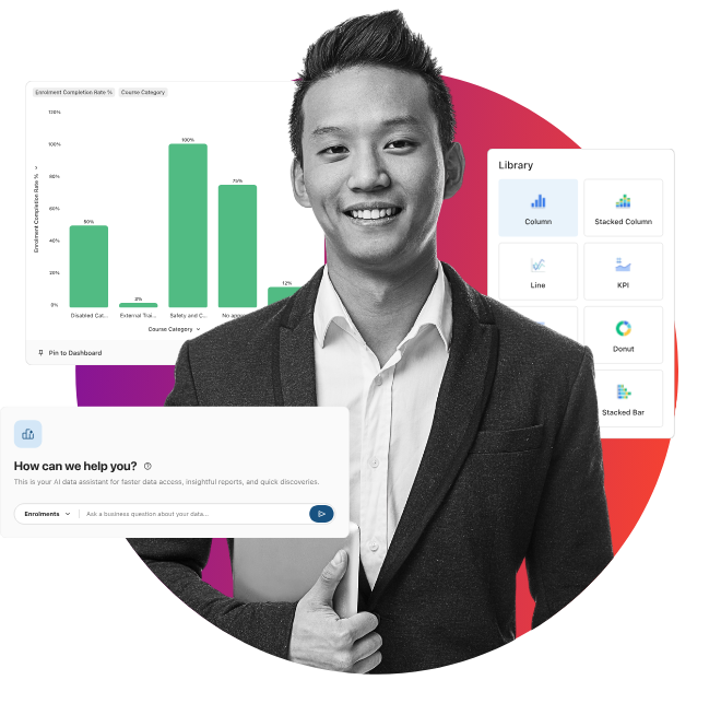 | Learning | Enrolments | Which courses have the lowest completion rates? |